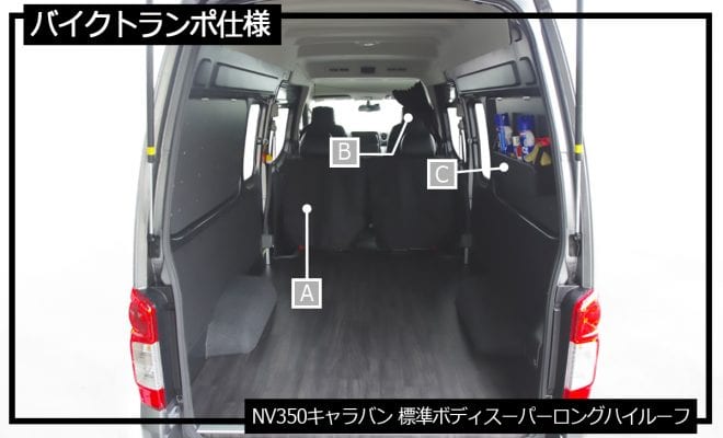 NV350キャラバン「バイクトランポ」に使えるESパーツの架装例(CL-21-01)