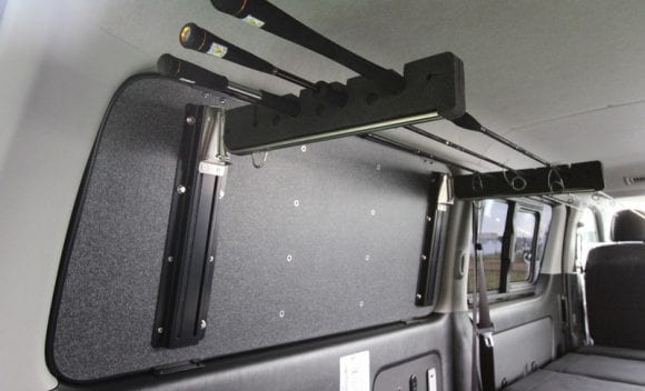 バイクに限らず、さまざまなトランポの定番アイテムとして、発売以来、変わらない人気を誇る窓埋めパネル「ESウィンドウパネル」。窓を保護する役割だけでなく、ナット有りタイプのウィンドウパネルは装着し、そこにオプションパーツを付ける事で収納スペースとして様変わりさせるトランポ必須アイテムです。「200系 ハイエース」、「NV350キャラバン」、「NV200バネット」の3車種に取付けるためのラインアップが用意されています。