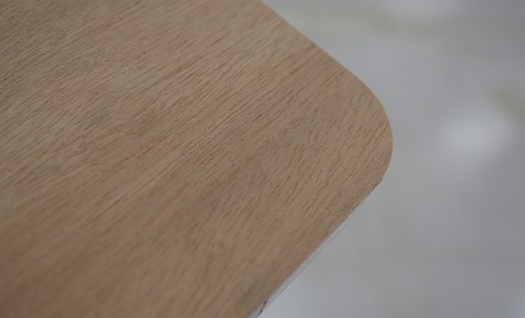 モールを取付ける木材を用意します。四角い天板を使用する場合は、板の角にアール(曲面)を取ります。モールの厚みがTモールは2mm、中空モールは7mmあるため、モールの厚みを考えて板を用意します。