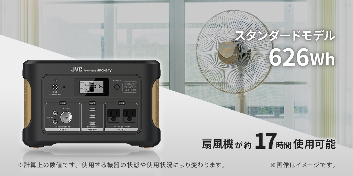 ※「JVC Powered by Jackery」とは、Jackery Inc.社との業務提携の下で製品の共同開発を行い、製造、品質管理とアフターサービスにおいて、JVCのノウハウを取り入れた商品を指します。