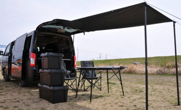 バックドアを利用して日陰を作れる「ESバックドアタープ」