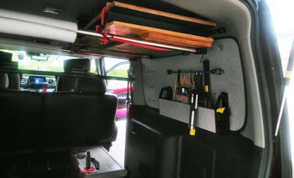 仕事道具収納とリヤガラスの目隠しとして重宝しています。