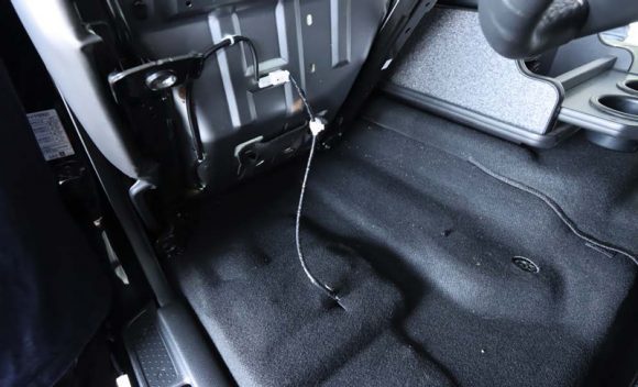 運転席側はシート裏からシートベルトハーネスが繋がっているので、シートを運び出す前に忘れずに外すようにしてください。ハーネスはカプラーオンのため、ワンタッチで外すことができます。助手席にはハーネスがありませんのでそのままシートを取外すことが可能です。