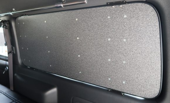 窓を保護する役割だけでなく、ウィンドウパネルに埋め込まれているM6サイズのナットを活用して収納スペースとして様変わりさせるアイテム。パネルの周囲にモールを巻き、ボディに傷が付きにくくなるように設計しています。ナット有りタイプのウィンドウパネルに埋め込まれているM6ナットを利用してDIYでアイテムを装着することも、弊社ESパーツオプションも装着可能。ベッドシステムと同じ素材(メラミン化粧板)で仕上げた特別仕様のウィンドウパネルです。