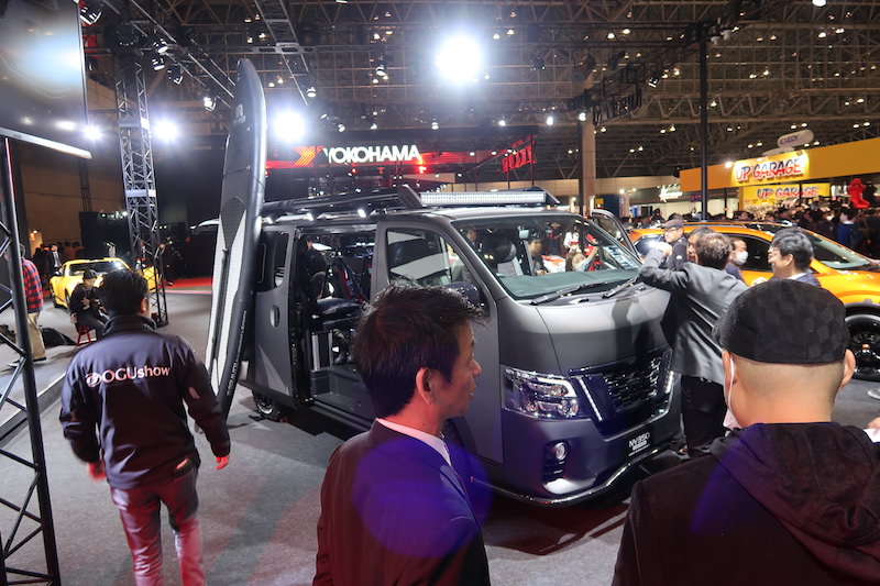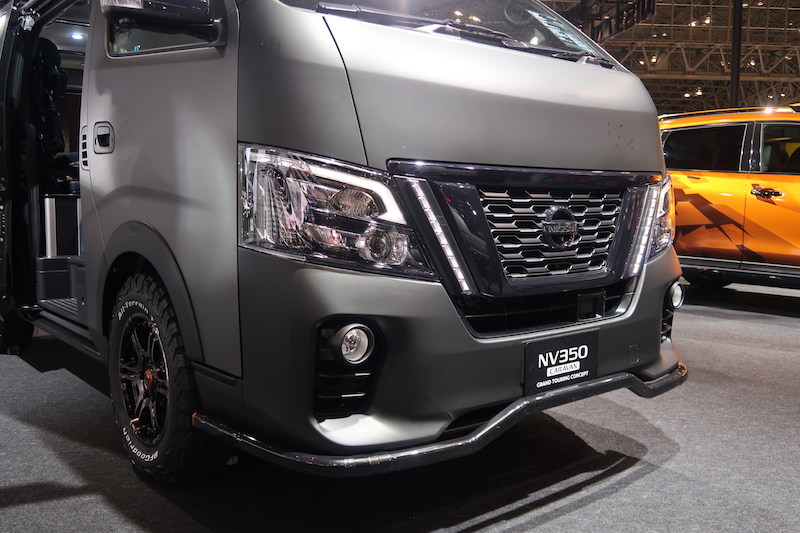 東京オートサロン2018レポート。今回は、日産自動車ブースです。数ある展示車の中でひときわ目立ち、注目を浴びていたのがNV350キャラバンをベースとしたコンセプトカー「NV350CARAVAN Grand Touring Concept」。