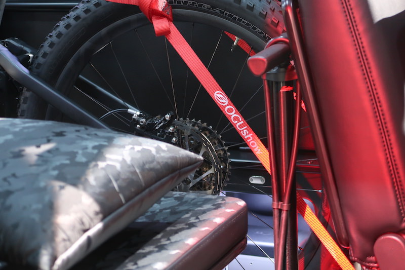 内装にはオグショーのESパーツも数多く装着いただいていました。おなじみのESサイドマルチパイプラック。そのオプションパーツであるロッドアタッチメント。また、トランポには欠かせないESタイダウンベルトも!
