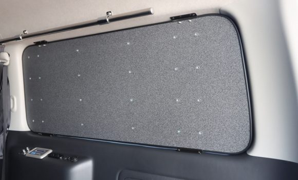 左右の窓にはESウィンドウパネル(ナット有)を装着。パネルがあることで窓に工具をぶつけてしまっても保護してくれます。また、M6サイズのナットが埋め込まれているため、このナットを利用してオプションパーツを取付けることで、窓埋め効果だけでなく収納スペースへ様変わりします。