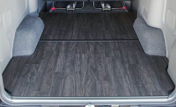 オグショーのESフロアパネルは、DIYで床貼りが実現します。もちろん、それぞれの車種、グレードの形状に合わせた専用設計のためフィッティングにもこだわっています。完全なフラットさや防水性能は備えていませんが、ボディへの加工は必要なく、ボルトオンで装着可能でお手軽です。パネル表面には、住宅などで使用されるクッションフロアを貼り付け加工済み。防滴素材なので、ラゲッジルームのお手入れがしやすくなり、ベッドなどの後付けアイテムの安定感がさらに増します。