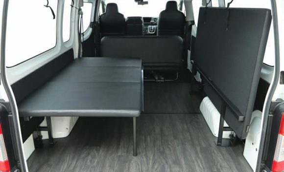 ESフリップベッドは、ラゲッジルームを可能な限り広く活用するために開発されたフレームタイプの跳ね上げ式ベッドキットです。片面を跳ね上げた状態でも反対側をベッドとして展開できるため、バイクや自転車などの積載に最適なレイアウトとなります。もちろん、両側のマットを展開すれば、荷室全面をベッドとして使用できます。シチュエーションに合わせて使い方を変えられる、使い勝手抜群のベッドキットです。ラインアップされている適合車種やグレードが豊富なので、200系ハイエースやキャラバンであれば、ほとんどのグレードにお取付け可能です。ESフロアパネルは必須ではありませんが、よりベッドが安定するため同時装着をお勧めします。※ESフロアパネルRは別売りです。