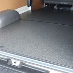 デモカーの荷室スペースに装備したベッドは、荷物の収納に優れた脚の無い画期的な製品です。置くベッドマットは細かく分割して製作しているため、ベッドの上から荷物の取り出しも簡単です。