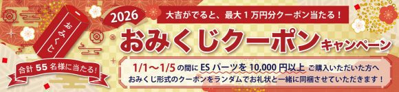 2026年1月1日(木)〜2026年1月5日(月)の間に、ESパーツを1万円以上ご購入いたいた方へ、次回使えるおみくじ形式の割引クーポンを商品に同封させていただきます!