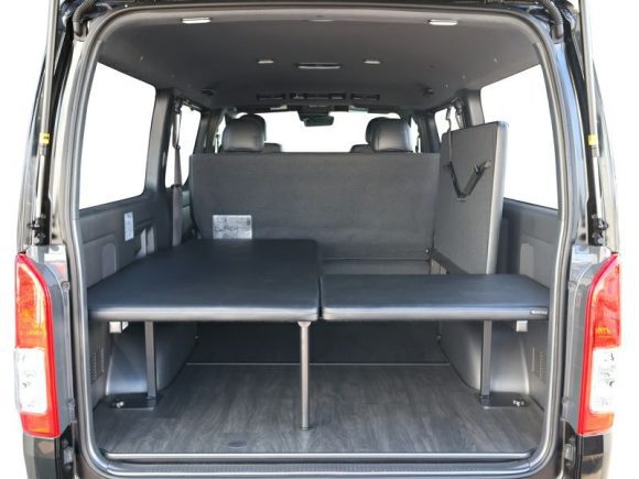 両側のマットをすべて展開することで、ラゲッジルームを全面ベッドスペースとして使用できます。