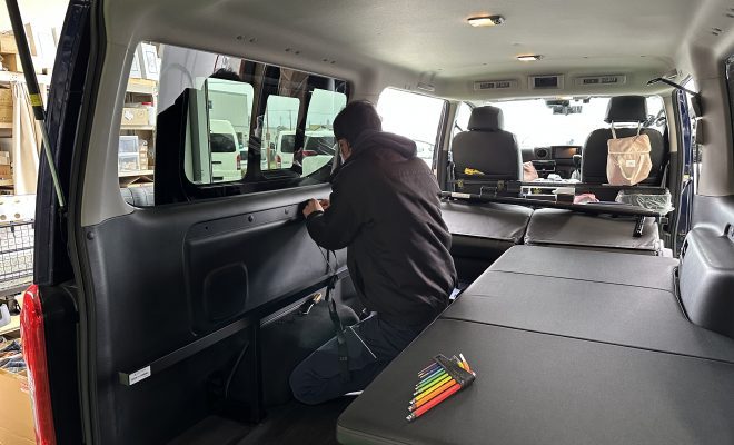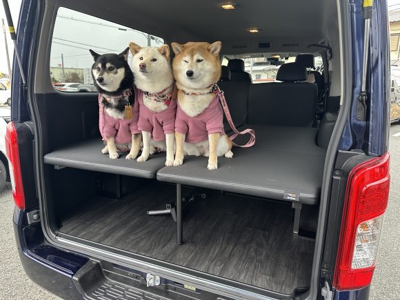 今回ご依頼いただいたのは、ES TCベッド・ESフロアパネル(R)・ESカーゴマットRR、3点の取付け。施工日当日はなんと柴犬3匹と一緒にご来店いただき、作業が完了したあとはさっそく乗り心地をチェックしてもらいました♪
