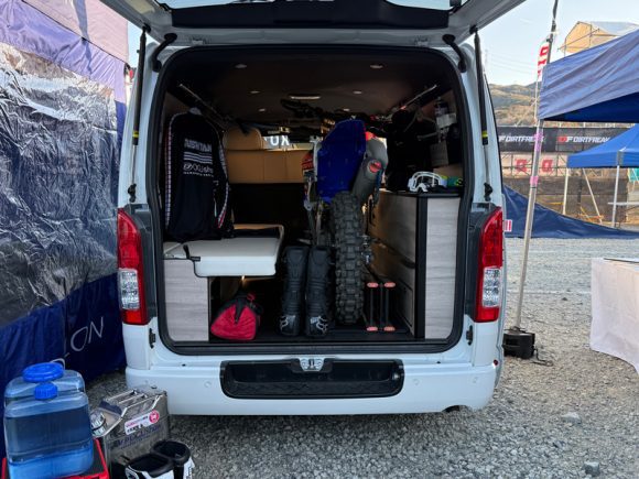 そしてオグショーブースでは、200系ハイエース TYPE-Cにオフロードバイクを積載した「車中泊 × バイク仕様のハイエース」を展示しました!