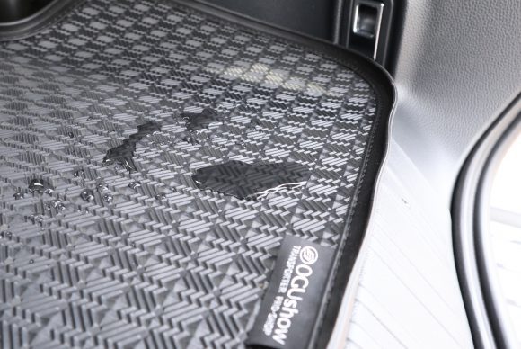 また、濡れた荷物も気にせず積める、防水性・耐久性に優れたエラストマー素材(TPE)を採用し、さらに、泥や水などの汚れが飛散しにくい構造の縁高モール(High Edge)で仕上げています。そのため、濡れた道具を積み込んだり、液体をこぼした時でも外に漏れるのを押さえ込んでくれます。
