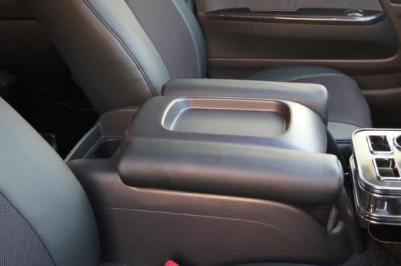 こちらは、標準のアームレストより高さが約5cmかさ上げしているので、あまりシートを倒さず背筋をのばして運転する方向けになります。