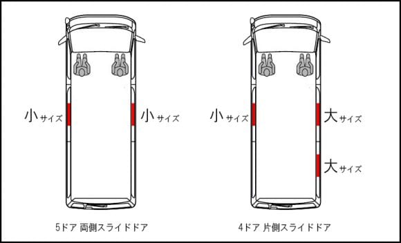 キャラバンの小窓はスライドドアの有無によってサイズが異なるので注意が必要です。