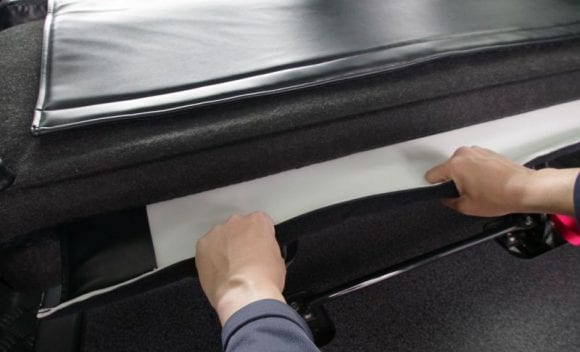 取付けは本体を背もたれに巻き付けて、マジックテープで固定するだけの簡単装着です。