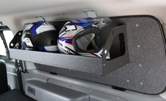 基本的なサイズのヘルメットなら収納可能。意外と置き場所に困るアイテムも、このトレーを使えば上手に収納できます。
