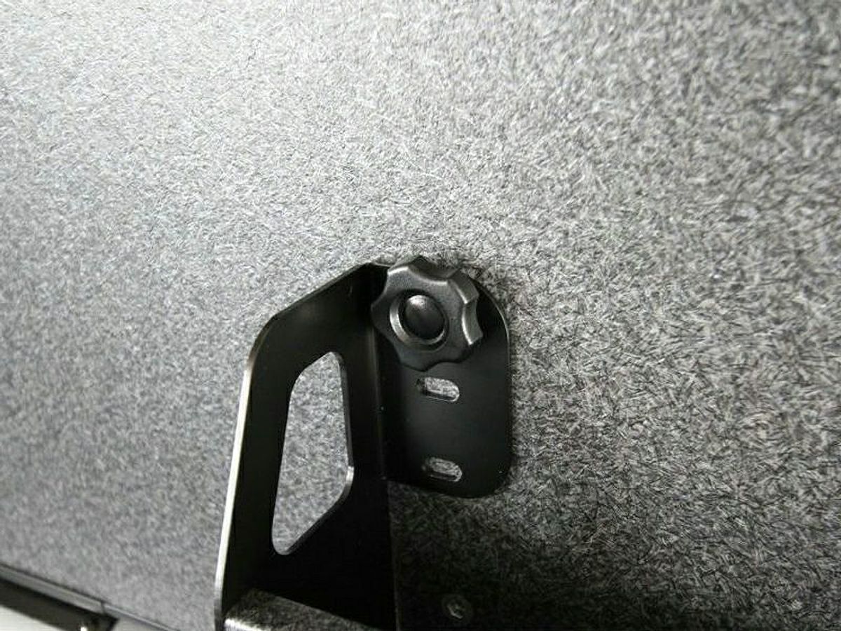 付属のノブボルトで左右固定するだけです。さらに、取付けるステーの穴位置を変えることで取付け位置の微調整も可能です。
