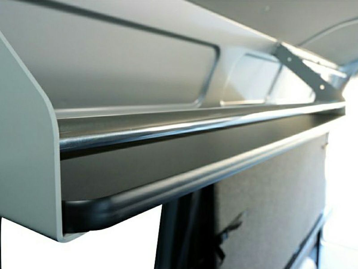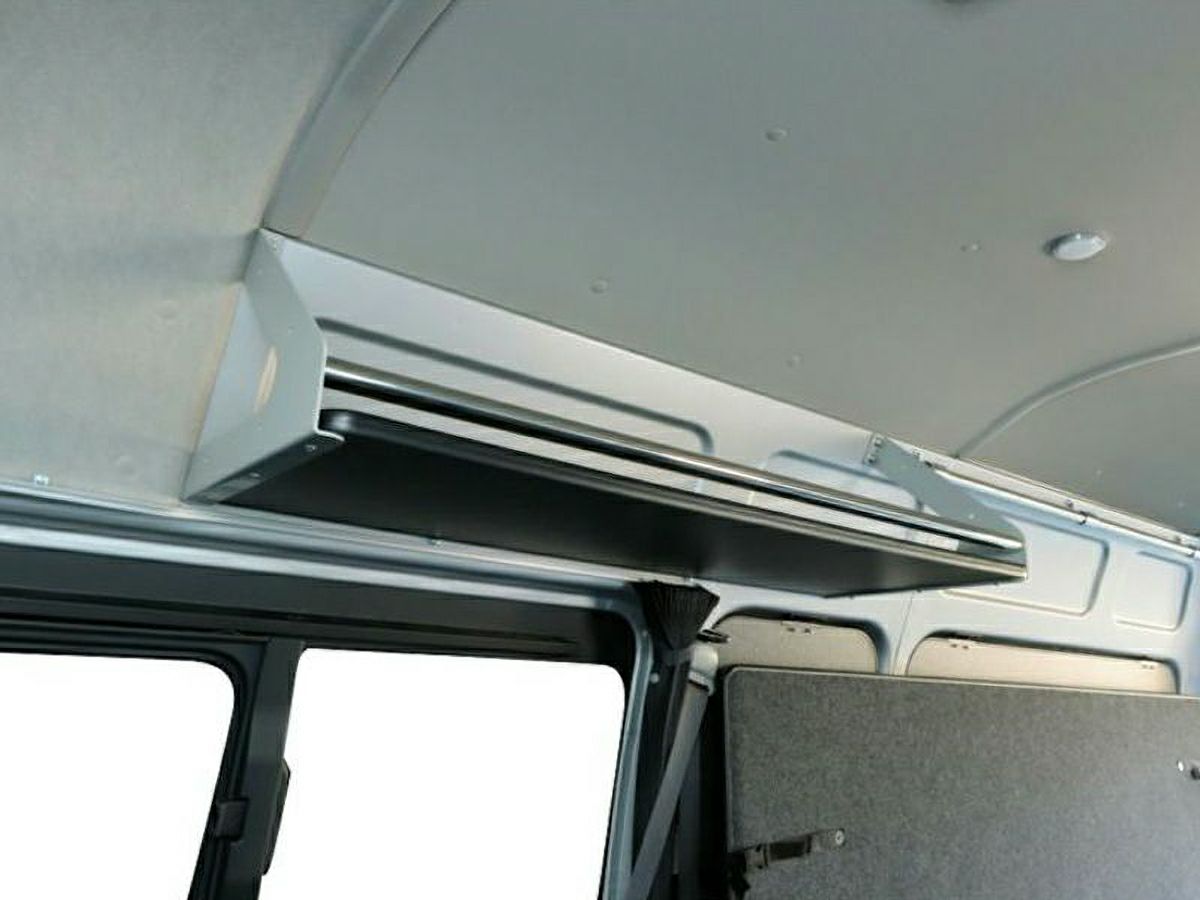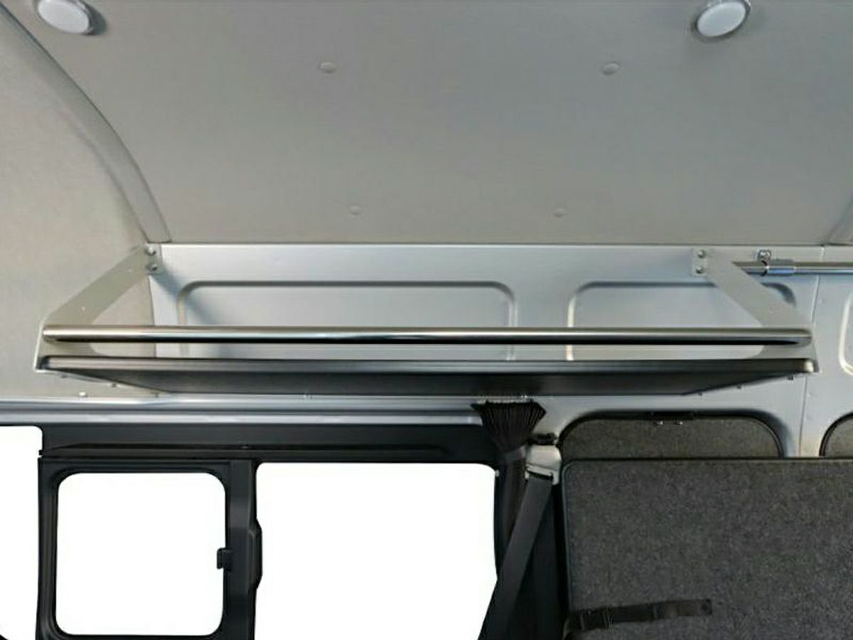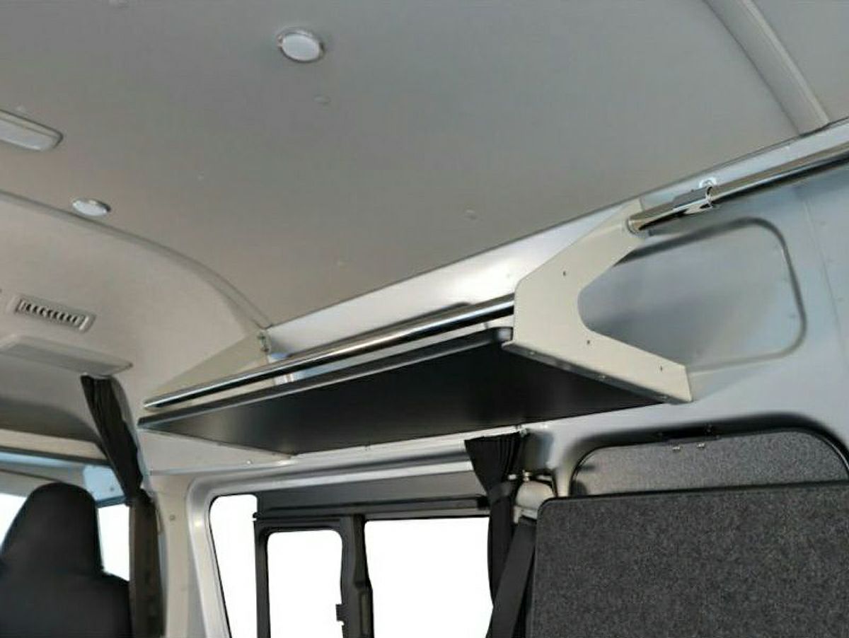 天井空間の広いハイルーフ車輌にトレーが存在することで、車中泊の際に使用するシュラフや衣類などを収納しておくことができます。ボディへの穴あけ加工が必要となりますが、車内が散らばりにくく、整理整頓が可能となり、無駄に思えたスペースが収納スペースに変わります。