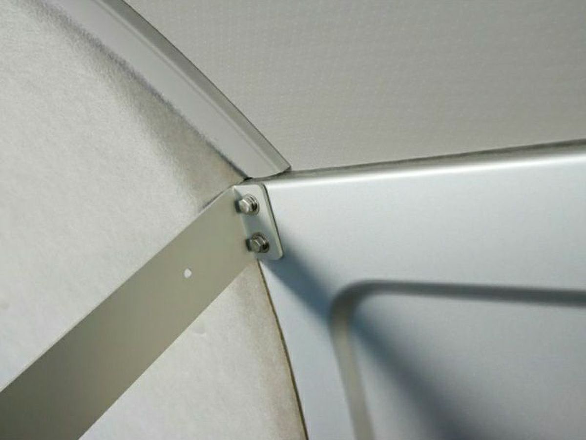 このESサイドトレーに採用されているフレームは1枚で構成されていて、折りたたみタイプに比べ強度があります。専用ステーの取付けはターンナットを使います。取付けに必要なパーツはすべて付属されています。
