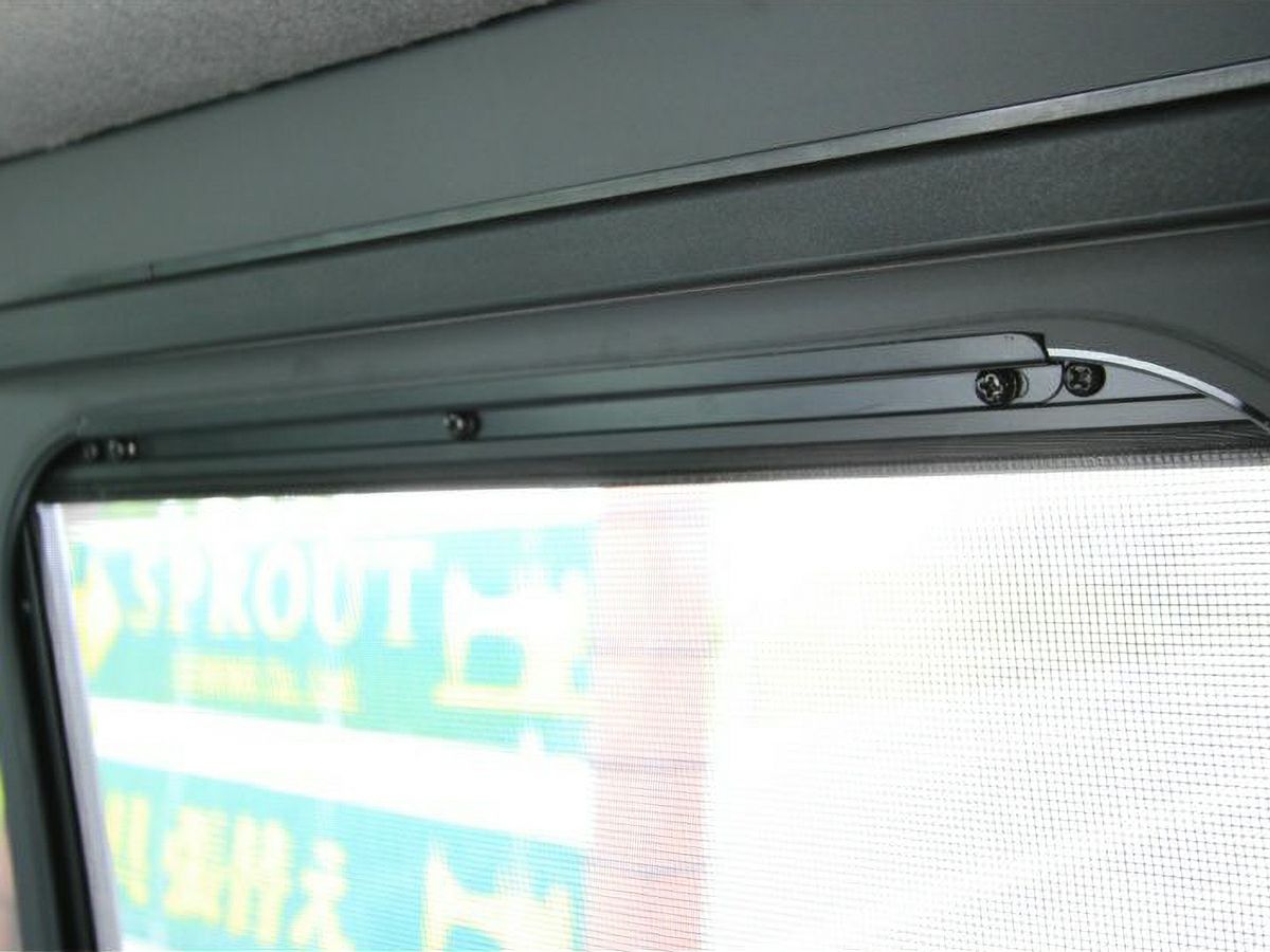 小窓に装着するこの網戸は、200系ハイエース4型以降の窓枠にピッタリはまるよう専用設計されています。しかも、取り付ける際にボディに加工は必要なく、内側から金具を使って固定するだけの簡単装着でプラスドライバー1本で固定できます。また、しっかり固定されていれば、そのまま走行が可能です。取り付けたままで窓の開閉ができるので、夜中の冷気や突然の雨などにも対応できる優れものです。もし網が破れても家庭用の網戸と同じように張り替えが可能です。