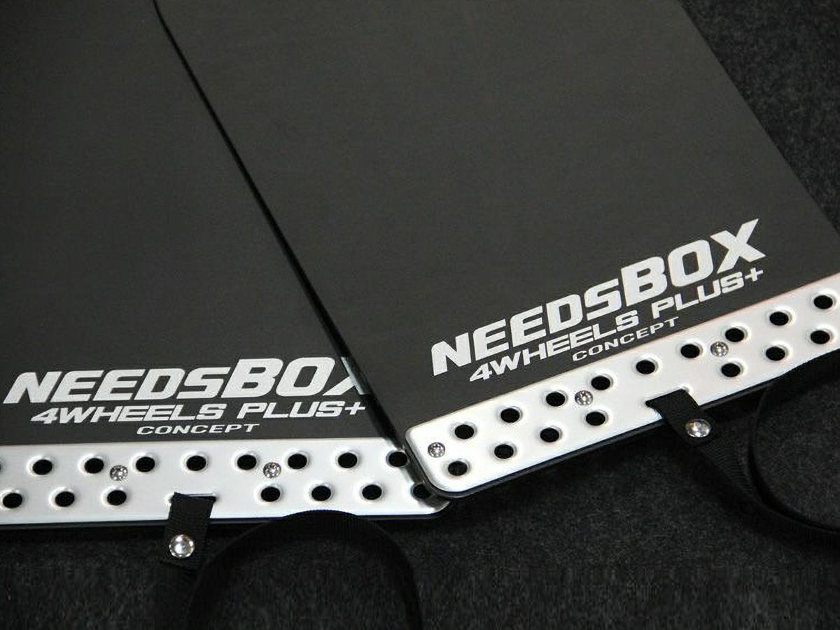 NEEDSBOX マッドガード汎用タイプの装着を容易にする車種別専用取付キットです。セットにはブラケット、サポートプレート、フラップカット用型紙が含まれています。