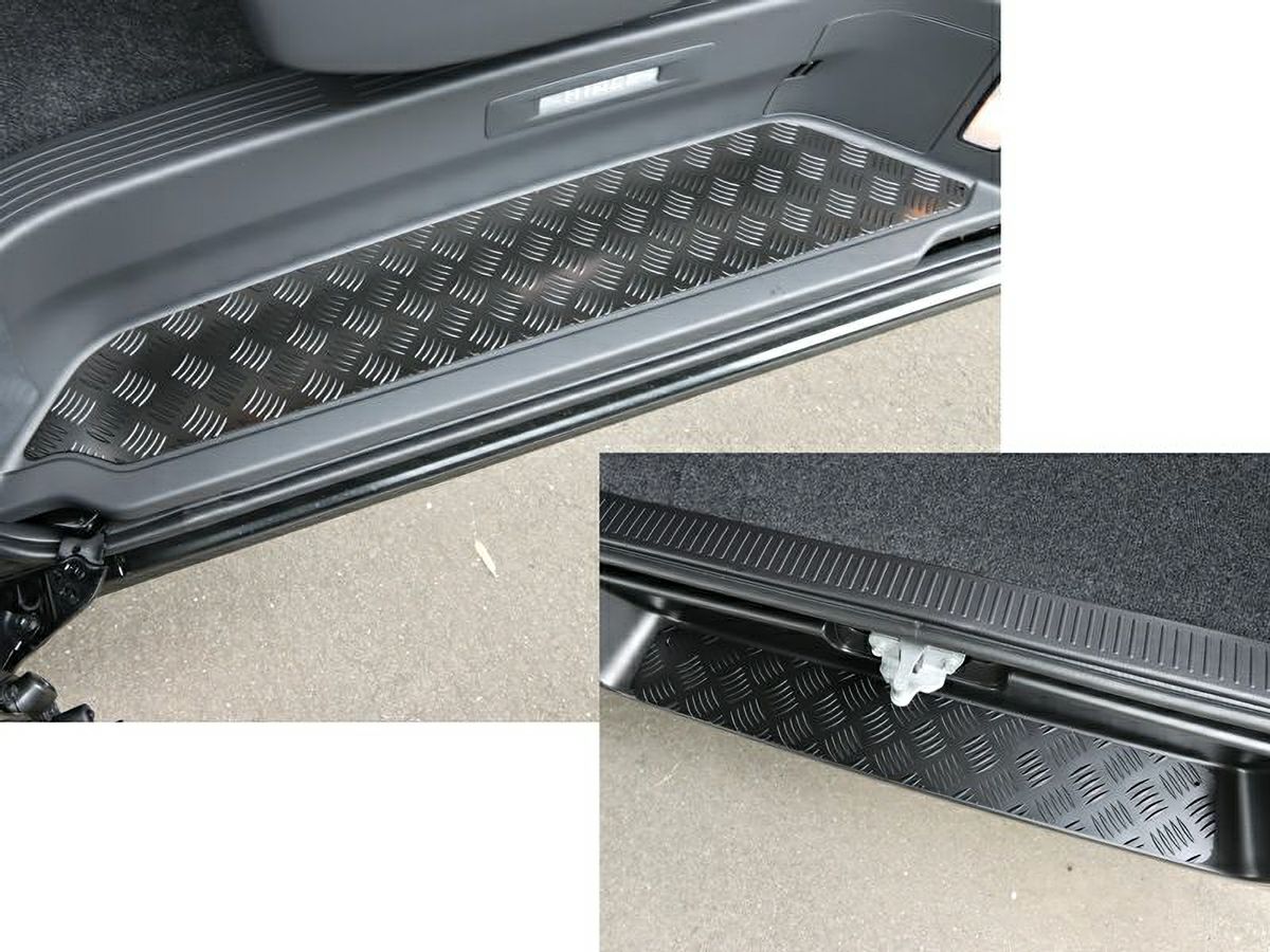 縞鋼板の特徴は滑りにくさであり、ステップが水で濡れたり、泥で汚れたりした場合でも縞目の突起が滑り止めの役割を果たしてくれます。さらに、耐久性を高めるために防錆性能にも優れたカチオン塗装を施工したアルミ製縞鋼板のステッププロテクターです。