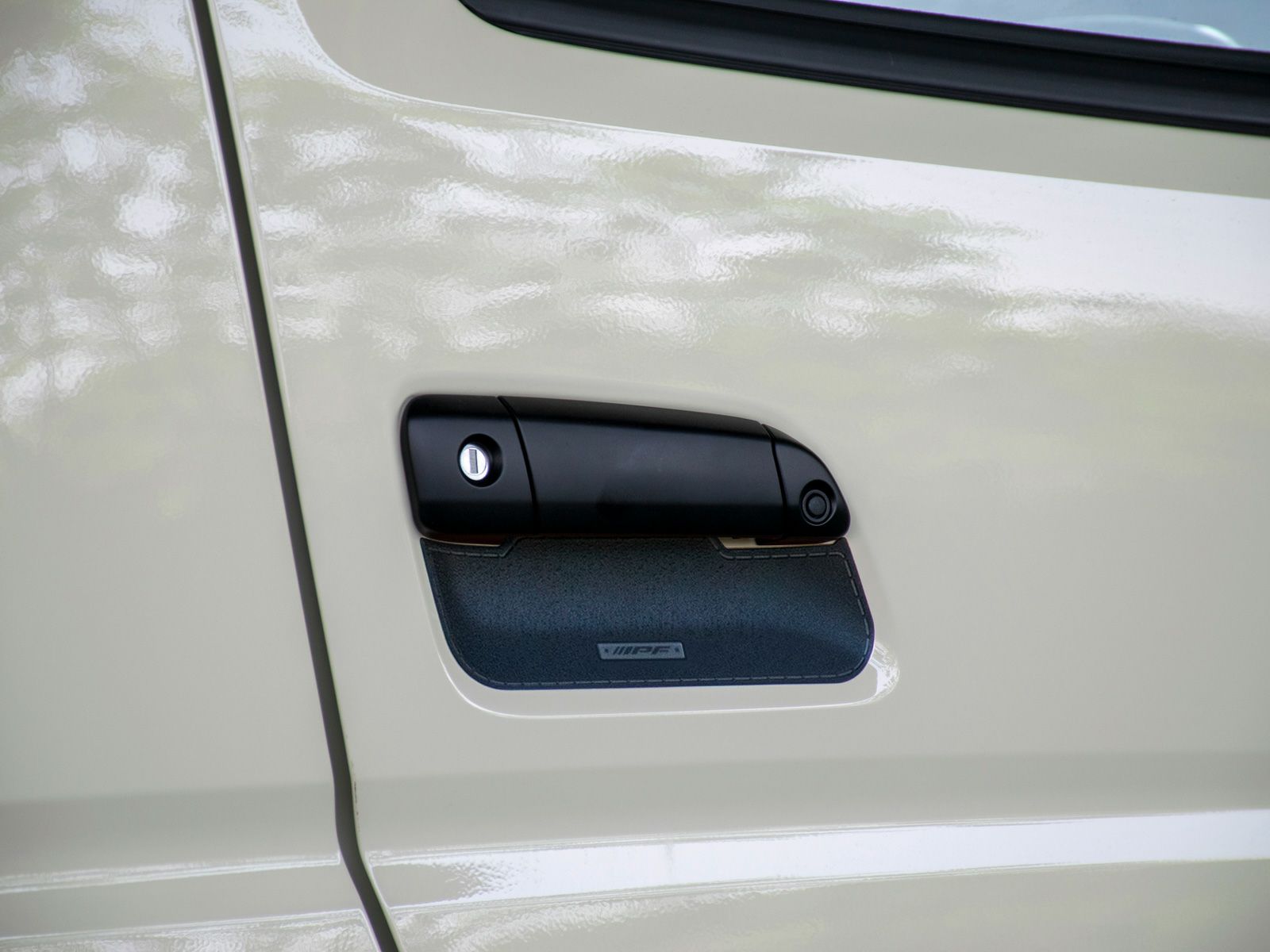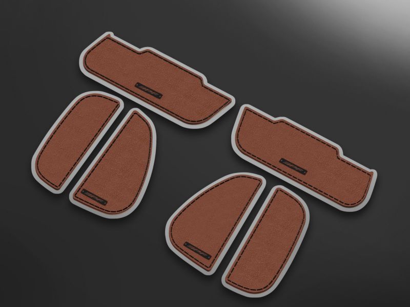 キズ防止だけでなく、レザー調にステッチデザインを施した「アウトドアシーンでも似合うドアハンドルプロテクター」となっていて、ドアハンドル回りのドレスアップとしても最適です。素材は自動車メーカーの純正採用部品と同等の高品質PVC材を採用。優れた耐候性や耐スクラッチ性を有します。