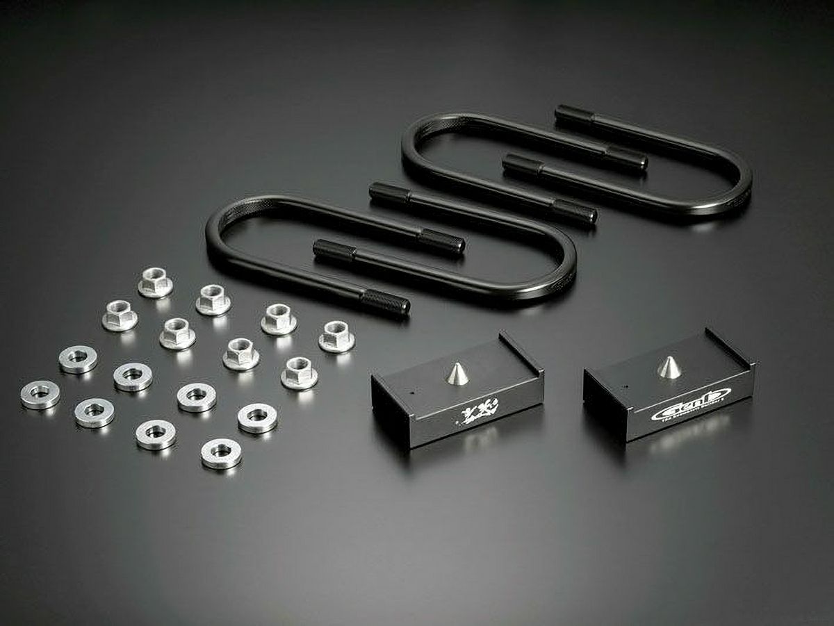 「ハイトダウンブロックキット」は、ハイエースをローダウンするうえで必要となるダウンブロックとUボルトのキットです。ブロック本体を多機能化することにより、従来製品では補えなかった欠点を完全に克服しました。