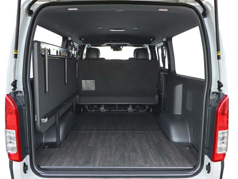 マットを跳ね上げると、ラゲッジスペースを収納スペースとして使用できます。タイヤハウス間のスペースをほぼ活用できるよう設計されています。