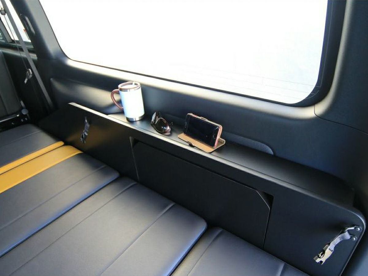 セカンドシートのリクライニングの角度に合わせてベッドの角も斜めにカット。使い勝手の良さを追求して、細部までこだわって設計されています。