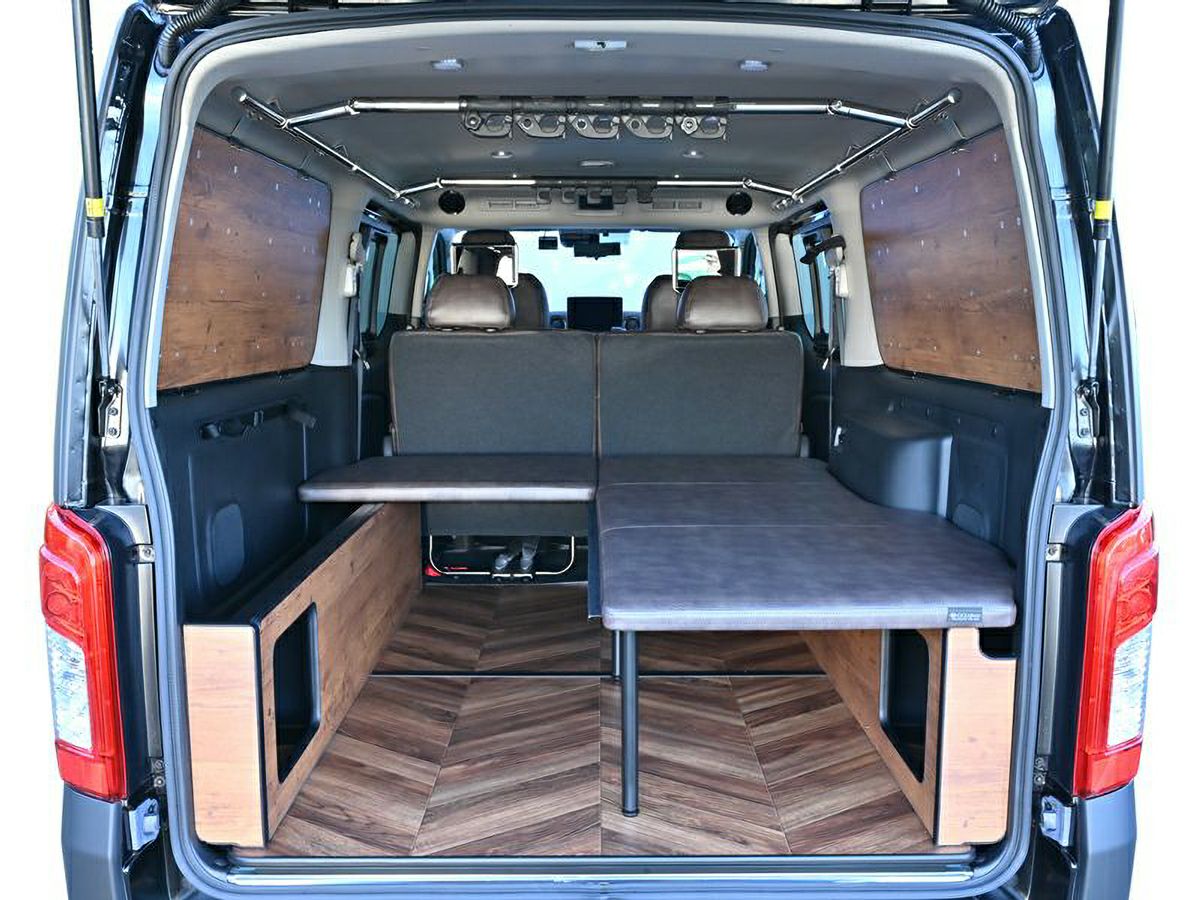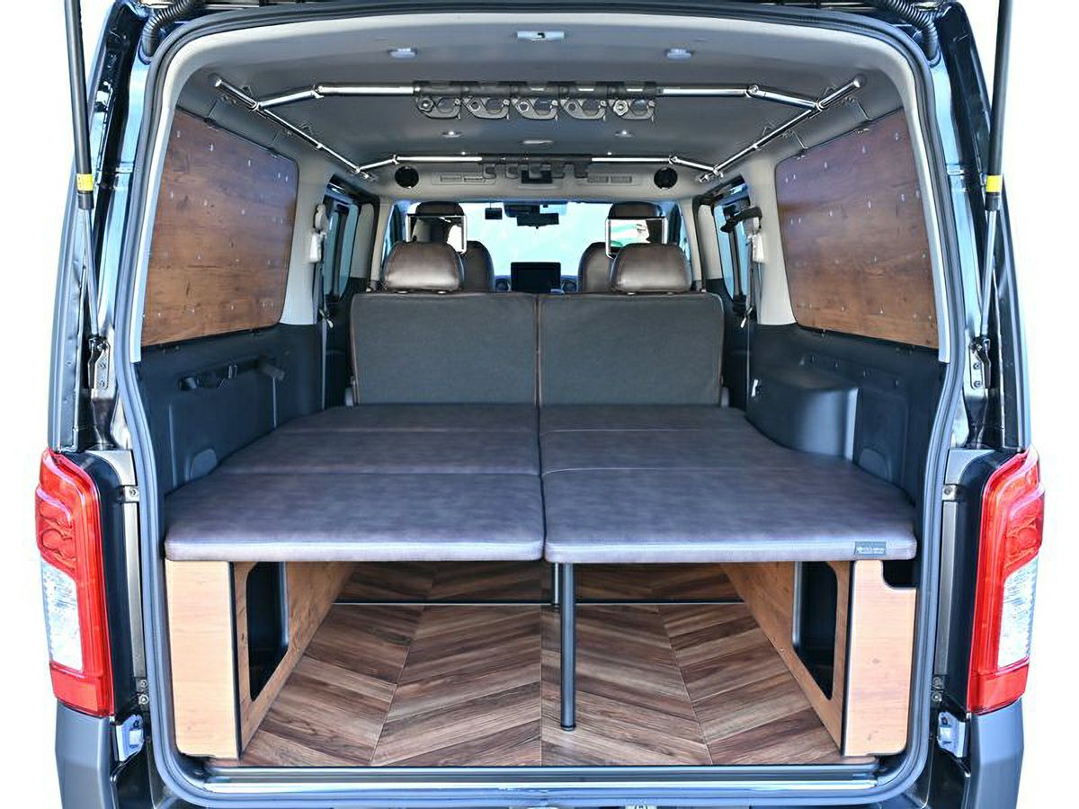 助手席側のベッドマットを3分割することにより、仕事に、遊びにと、さまざまなシチュエーションで使い分けれるようになっています。