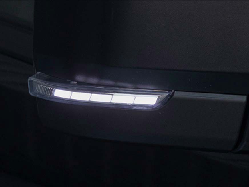 ドアミラーロアカバー内にウインカーレンズを搭載。後付け感のない純正風な仕上がりに。ボディ色を問わず、取り付け可能です。
