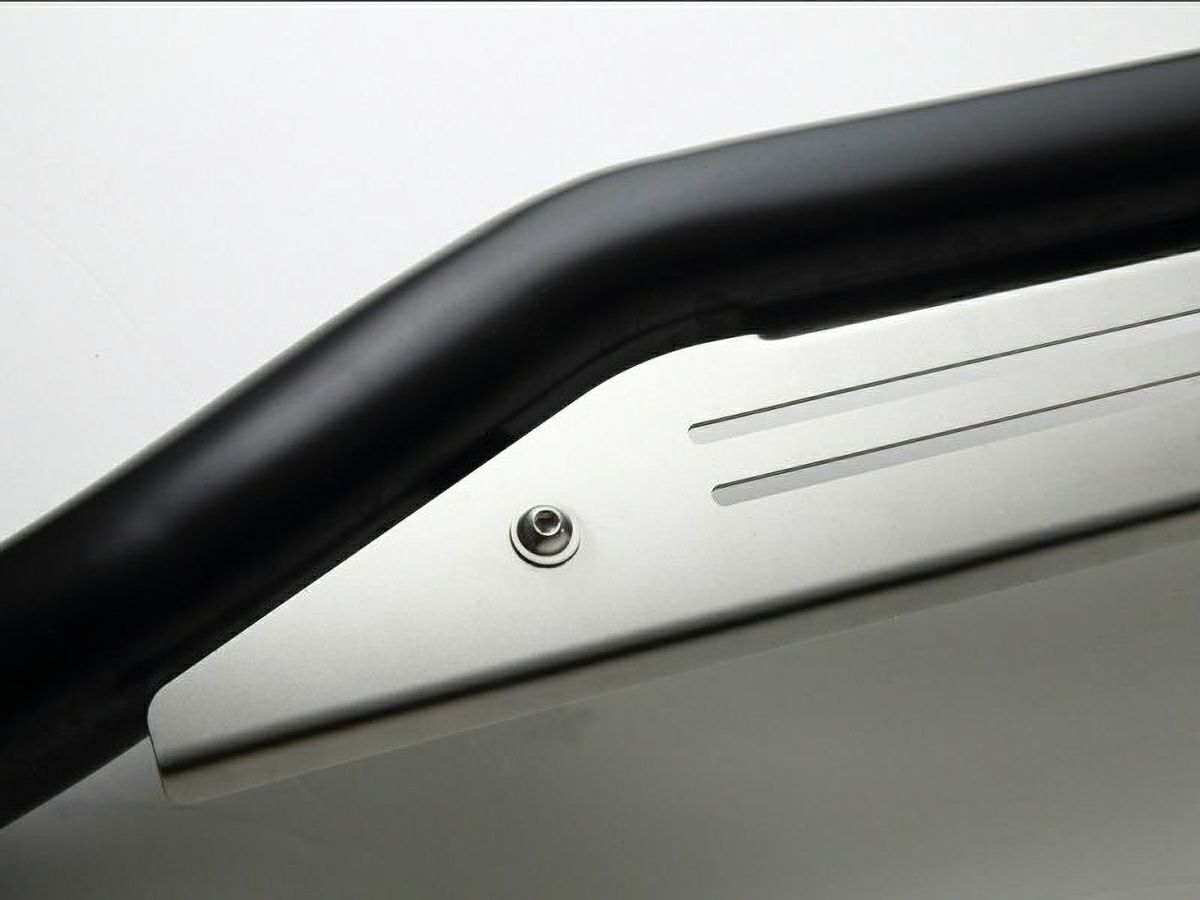 4WD&SUV用フロントガードの定番ともいえるフロントスキッドバーに従来のポリッシュ(磨き)・チューブとショットブラスト・プレートに加えて、ブラック紛体塗装のチューブとプレートを追加。オールブラック仕様やブラック・チューブ+ショットブラスト・プレート仕様など、お好みや車両カラーに応じて4通りの組み合わせの中から選択していただくことが可能です。ドレスアップにとっては重要となるカラーコーディネートを楽しんでいただけます。