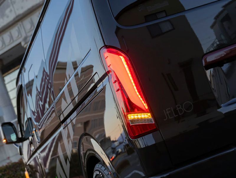 適合車種はトヨタ 200系ハイエースで、新デザインのテールランプにオープニング&エンディングアクションを採用しました。
