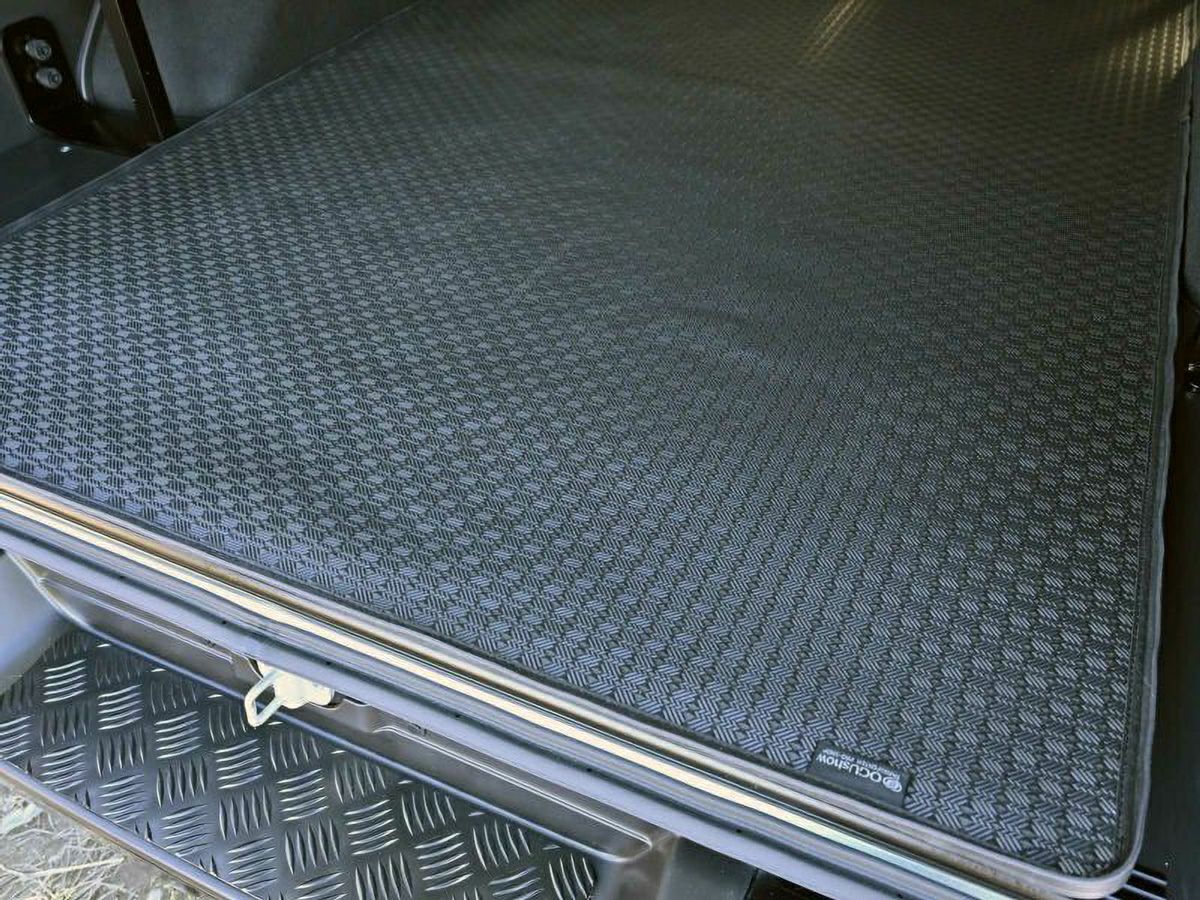 200系ハイエース標準ボディや、キャラバン(NV350)標準ボディの左右のタイヤハウス間にサイズを合わせて設計されたカーゴマットです。濡れた荷物も気にせず積める、防水性・耐久性に優れたエラストマー素材(TPE)を採用し、さらに、泥や水などの汚れが飛散しにくい構造の縁高モール(High Edge)で仕上げています。