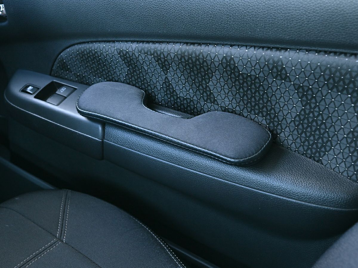 ドアポケットを使ってひじの置き場を確保します。運転中に体にかかる負担を軽減したり、休憩中に腕を置いたりと、ロングドライブから日常まで幅広いシーンで役に立ちます。