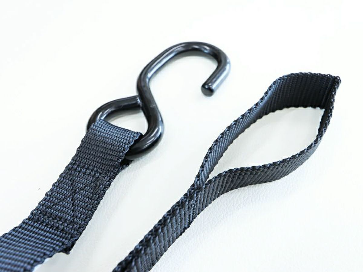 バックル部分にはセンターループが取付けられているため、このループにS字フックを掛ければ「サブベルト」に変身します。バイクを傷つけないようにS字フックにもラバーコート加工が施されていますが、S字フックが入らない場所には、このサブベルトを介して取付けることで車体が傷付くのを防ぐことができます。