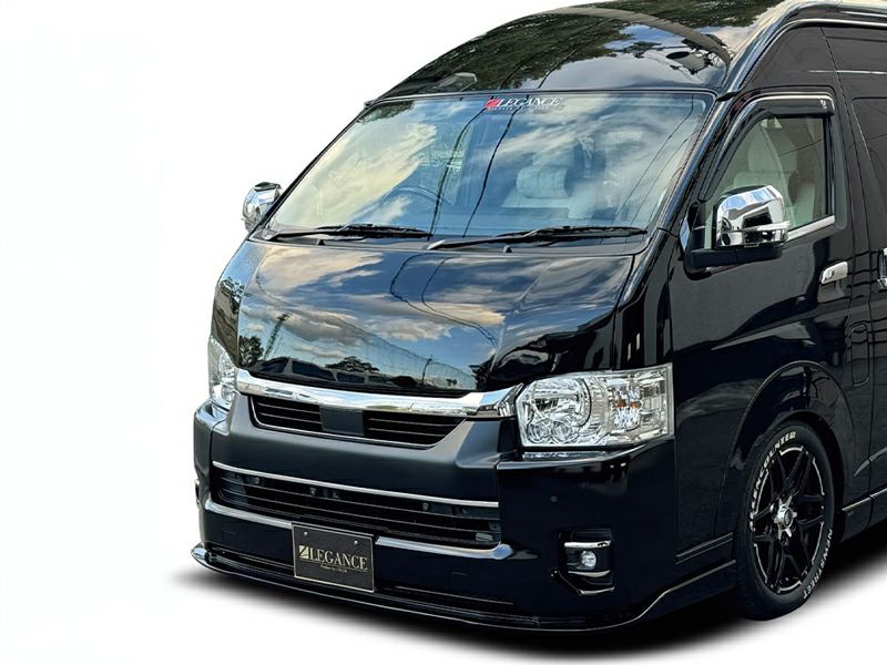 200系ハイエースの純正バンパーに直接取付けができる手軽さとLEGANCEらしさを兼ね備えたフロントフリッパー