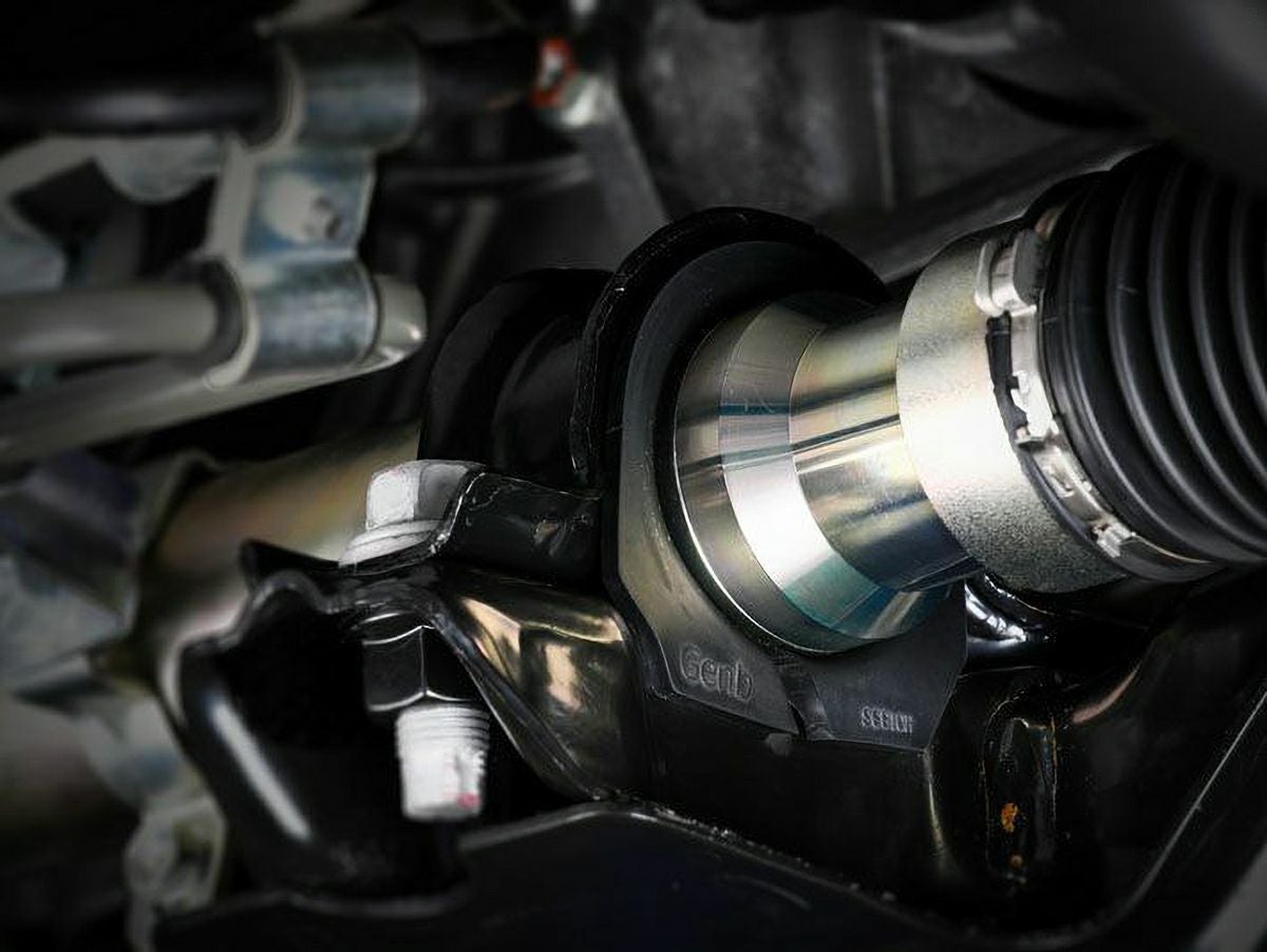 ステアリングラックの固定に用いられるブッシュの強化は、ステアフィール向上を図るうえで非常に有効な手段です。特に、高性能タイヤを履いてステアリングを激しく操作するモータースポーツ車両においては、まず最初に手を加える部分といっても過言ではありません。「ハードステアリングラックブッシュ」は、ステアリング機構の要となるステアリングラックをエンジンクロスメンバーにガッチリ固定することで、シャープなハンドリングとステアリングの中立性向上を果たすベーシックアイテムです。