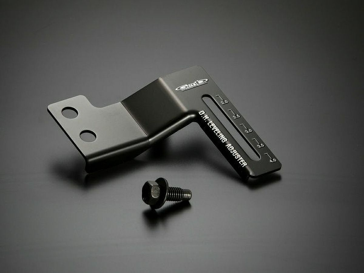 「オートレベリング機能付バイキセノンヘッドランプ」により、ローダウンした場合にある問題が発生します。それは、後輪軸に設置されているハイトコントロールセンサーが荷重による車体後部の沈み込みとして感知し、光軸を自動的に下向きに調整してしまうのです。「O.H.レベリングアジャスター」は、センサーリンクをダウン量に応じた位置に移動することで、下がった光軸を正常な高さへと補正するアイテムです。