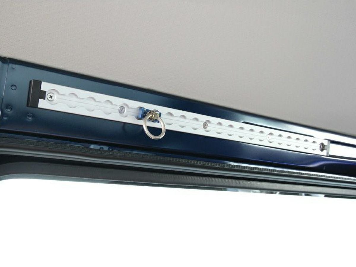 荷室の鉄板部分などにタッピングビスやボルト&ナットでレールを固定すれば、欲しいときに欲しいところへ別売りのワンタッチリングを取り付けて、ベルトなどで荷物を固定することができるようになります。