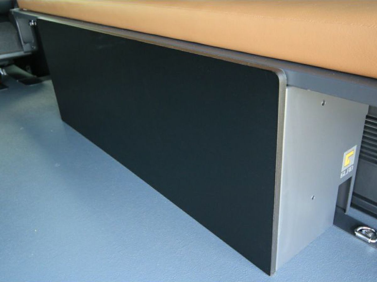 左ボックスはあえてボックス幅を広げて収納スペースを設けています。常に積んでおきたい道具の収納をしたり、後々サブバッテリーシステムを増設したい場合でも、ベッドを造り替える必要がありません。