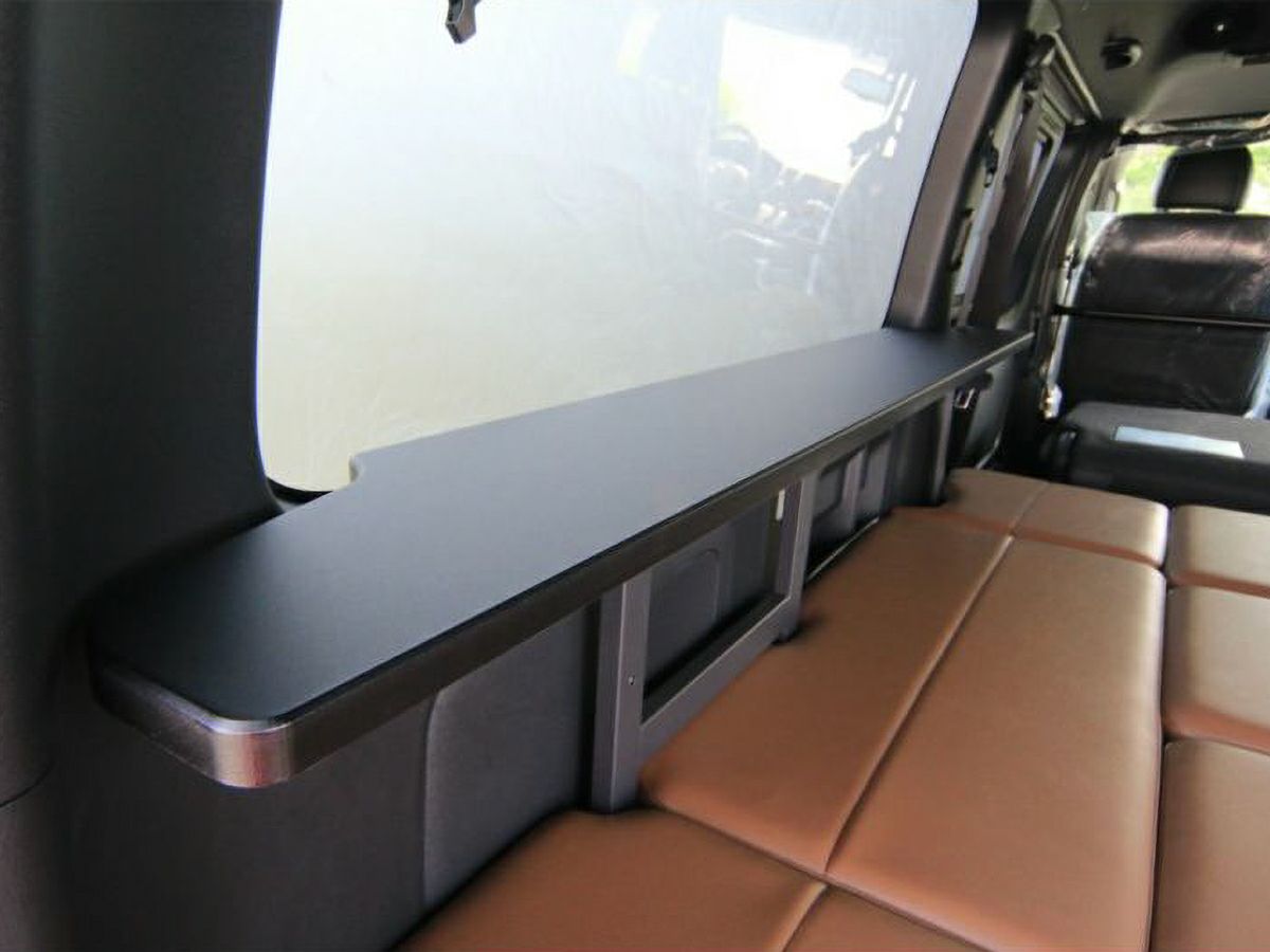 左右についたスリムなサイドテーブルは、就寝時にも邪魔になりにくいベストサイズ。ちょっとした小物が置け、車中泊時にも大変便利です。テーブルはベッドフレームに固定されているのでテーブルとして利用するのに十分な強度が保たれています。
