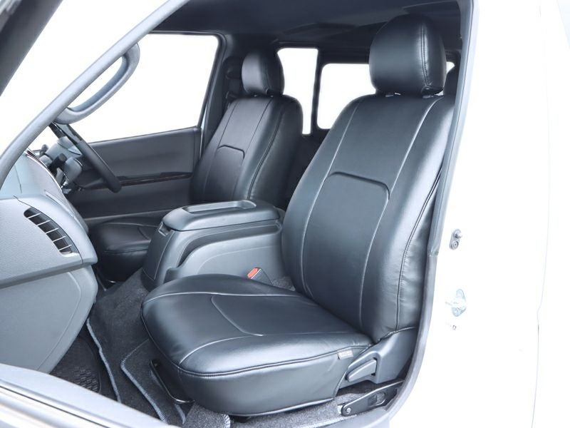 一年中お使いいただくトランポ。さらに長時間のドライビングを想定し、「ブラックレザー×ブラックモケット」のコンビ仕様は、中央部分には肌触りの良いモケット素材を採用。夏は涼しく、冬は冷たくなりにくい効果が期待できます。だからといってデザイン性もないがしろにせず、基本となるレザー生地と近似色のモケット素材を組み合わせることにより、シートカバー全体の統一感を保っています。