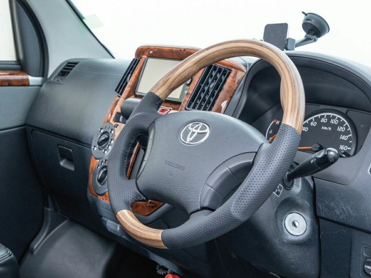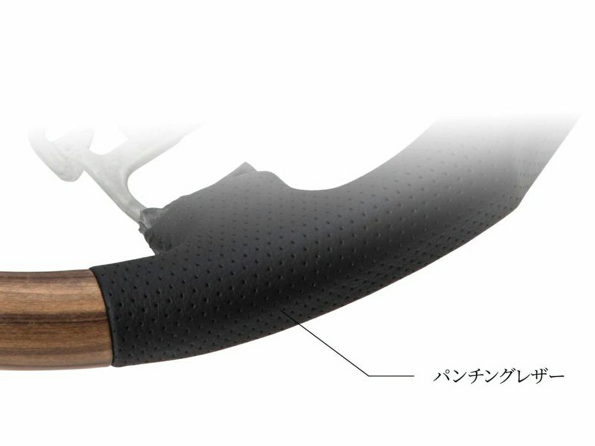車種専用設計なので純正エアバックにも対応し、パンチングレザーが握り心地を引き立たせます。
