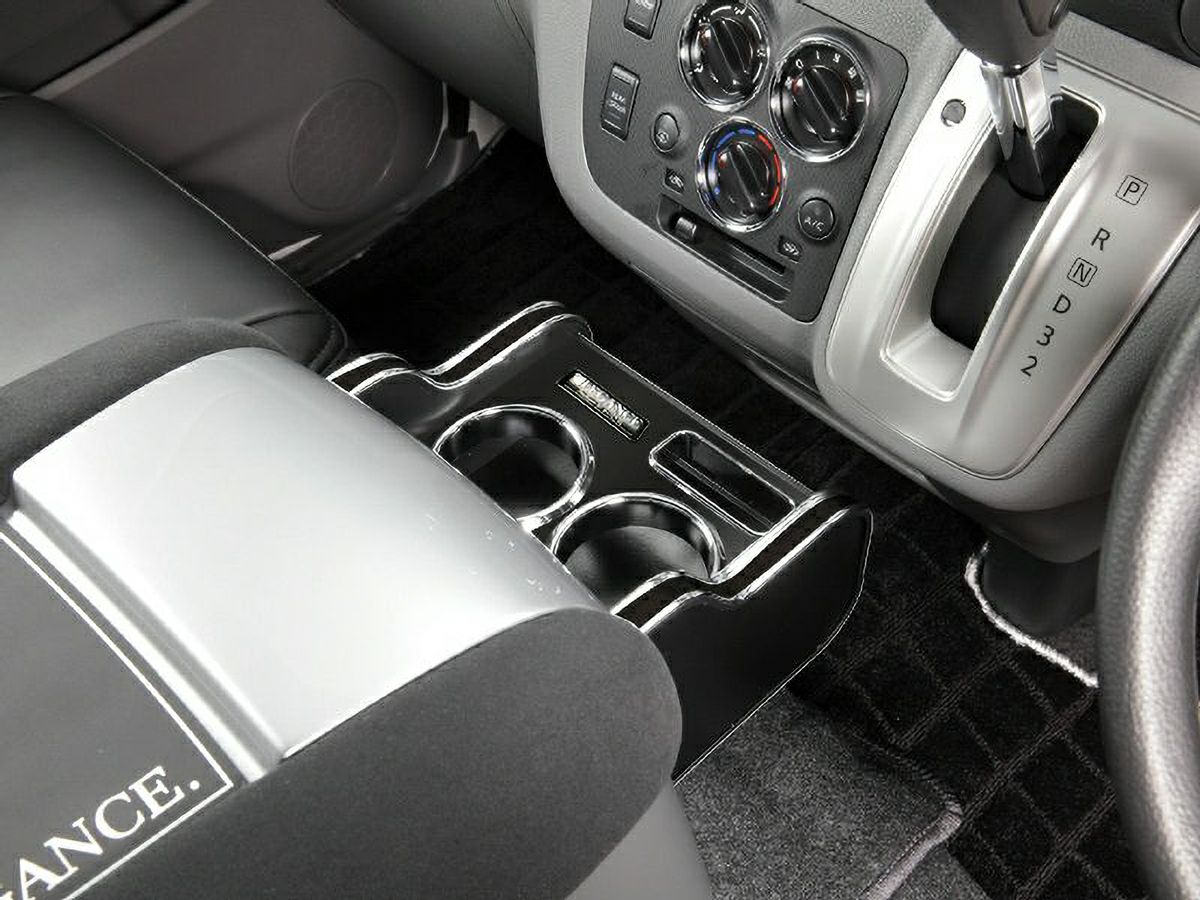 全10色から選べる新型キャラバンNV350用インテリアカップホルダーが新登場。 純正センターコンソールの前部分に取付頂けます。 また専用ステーと両面テープでしっかり固定。 カップホルダー2個に加え携帯、タバコホルダー、スマートフォンホルダー1個が付いた使い勝手が好評のカップホルダーです。 さらにフルメッキモールで高級感を演出。 安心と高品質の日本製でお好みのインテリアシーンをアシスト! ドリンクを置けるコースター×2個&LEGANCE樹脂エンブレム×1個付属。
