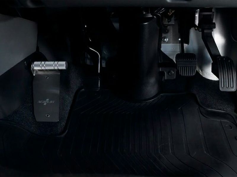これまで左足をプレート(平面)で受けるのが常識になっているフットレストを、『バー(丸棒)』で受けることで、驚くほど安定したドライビングポジションを実現。アクセルペダルに置いた右足と、フットレストバーNEOに置いた左足の位置関係がシンメトリーに近い状態になるため、より自然な姿勢で運転することができます。